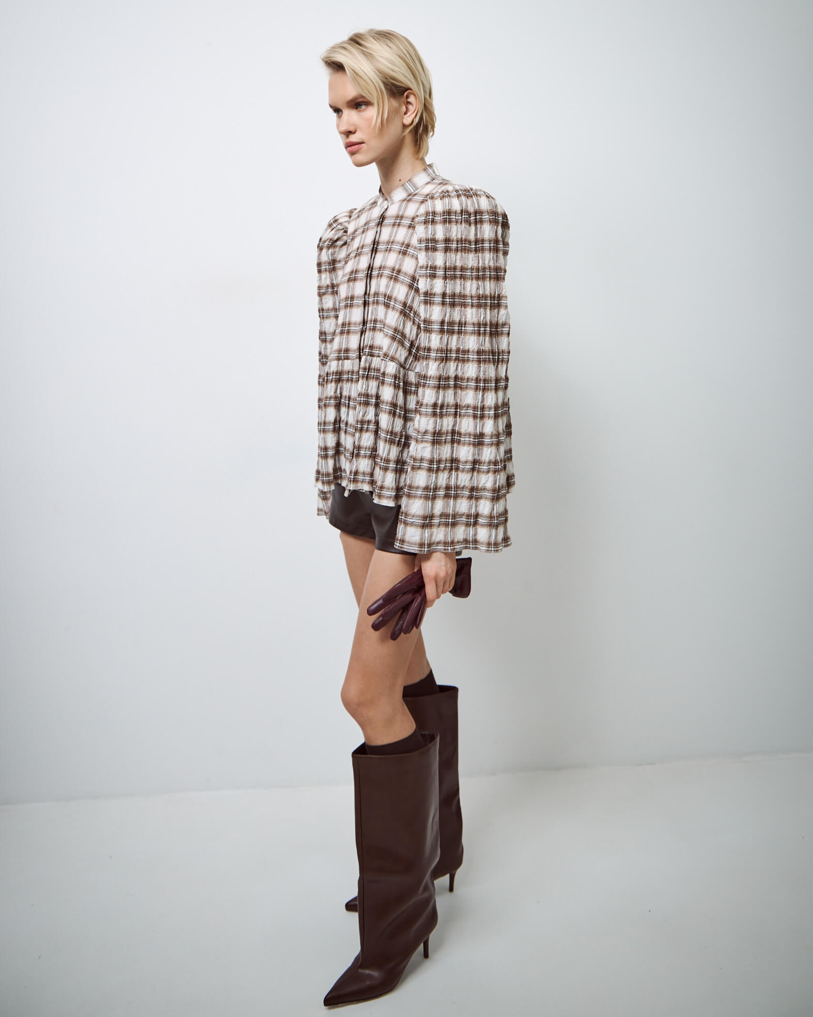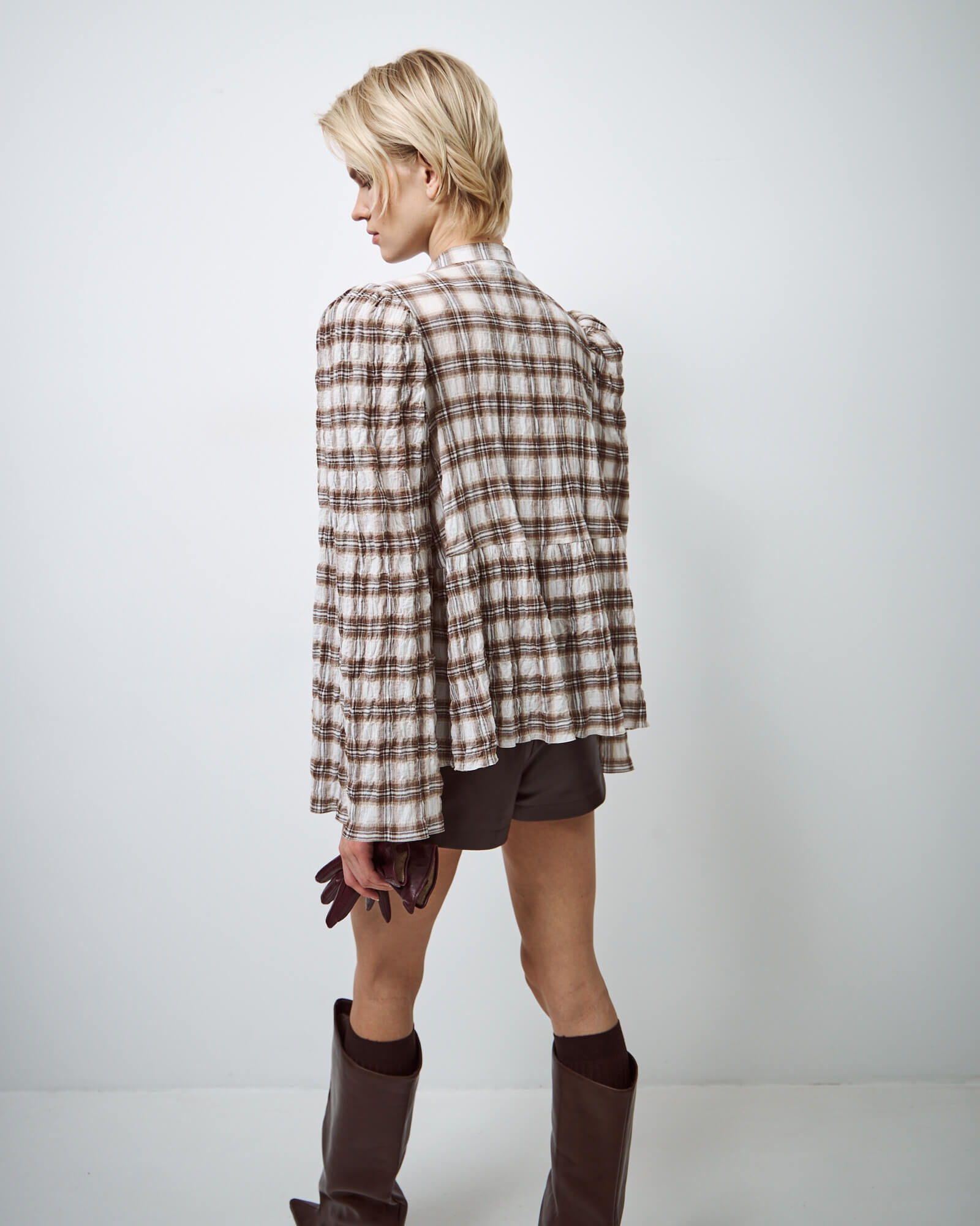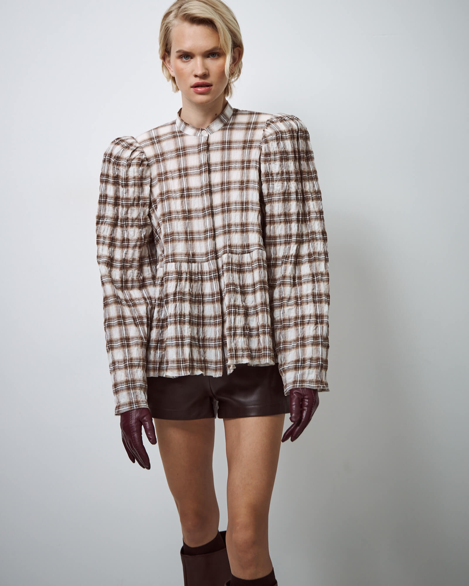 Рубашка пижамная в серо-бежевую клетку