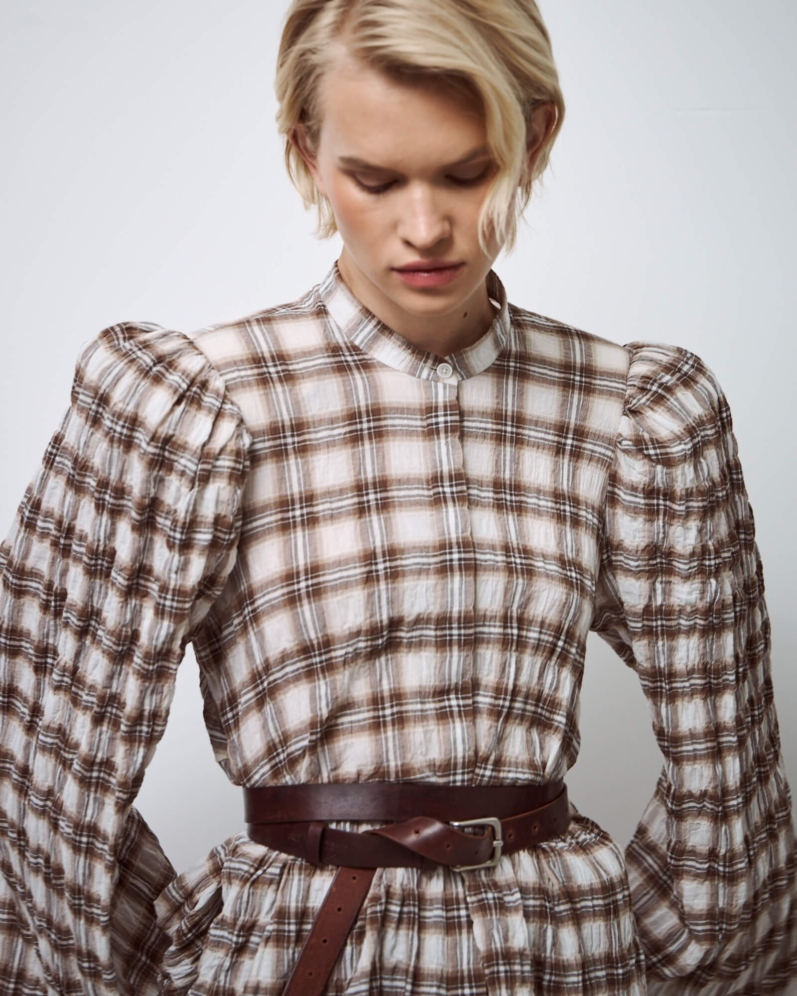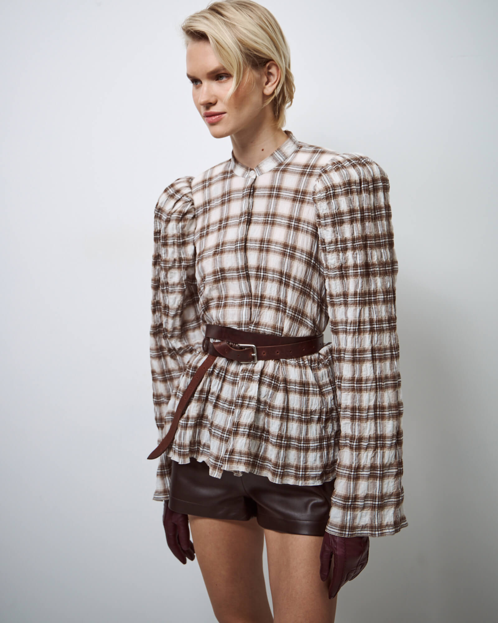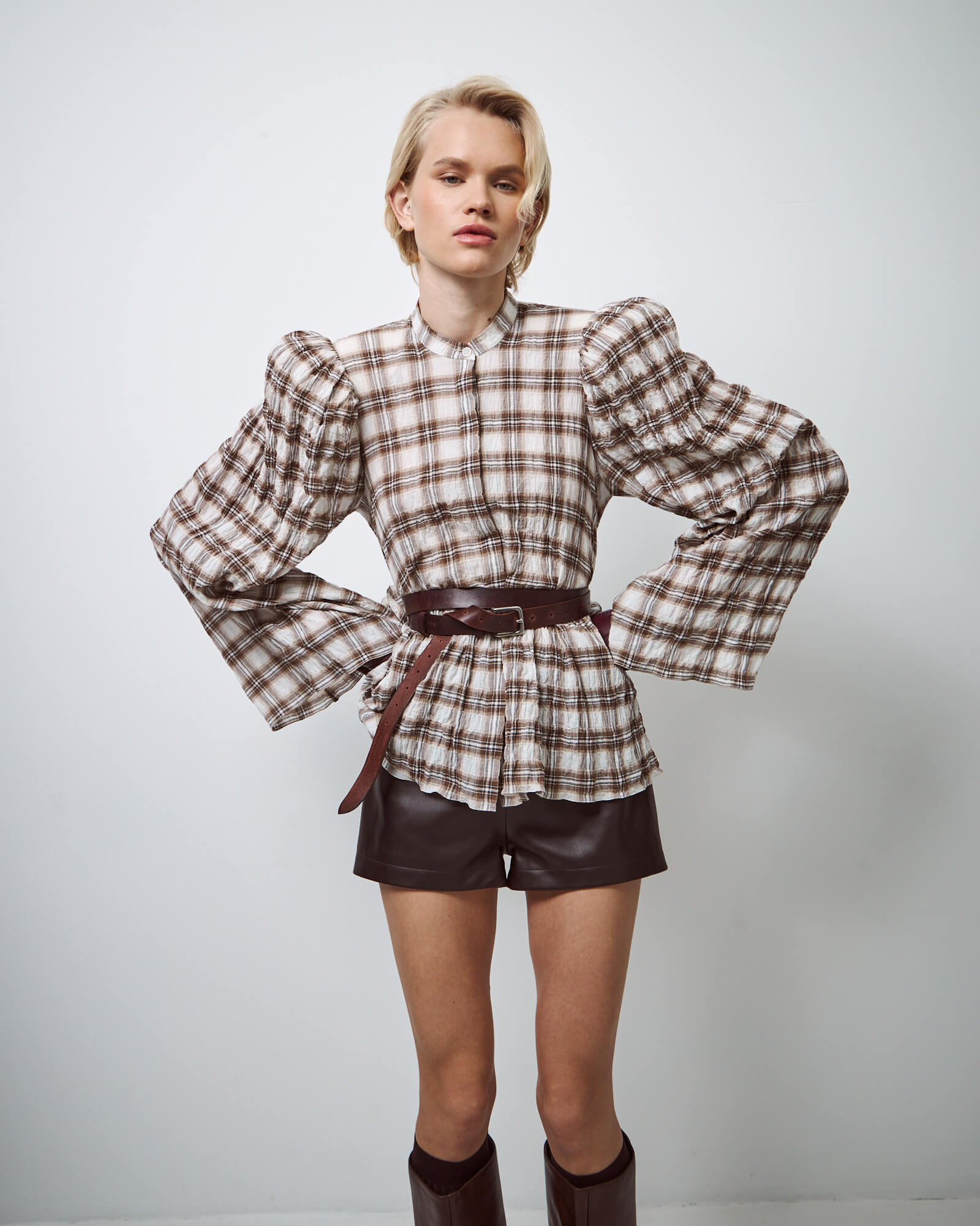 Рубашка пижамная в серо-бежевую клетку